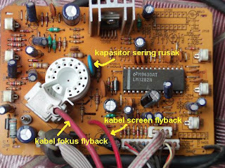 2. di BLOK RGB nya cari kapasitor pembuang muatan, masalahnya ada di kapasitor ini.